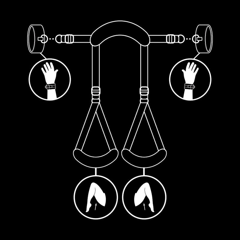 Permite que tu imaginación trascienda los límites físicos con este innovador sistema de ataduras. Fabricado con cuero vegano ajustable y resistente, este set está diseñado para mantener las piernas en posición, proporcionando estabilidad y comodidad durante los momentos más intensos. El arnés de cuello acolchado garantiza una experiencia confortable mientras mantienes el control absoluto.