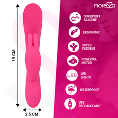Telmo: un vibrador tecnológicamente avanzado y revolucionario. Este rabbit de diseño curvado con estimulador clitorial suave y flexible está creado para ofrecer un placer incomparable, ya sea en compañía o en soledad. Fabricado con silicona médica de alta calidad, Telmo combina tecnología, comodidad y elegancia en un solo juguete.