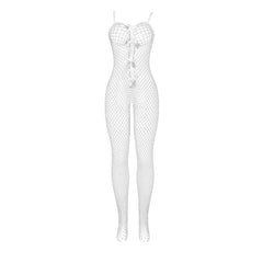 Bodystocking Sublime de Rejilla Blanca Crotchless con Detalles de Lazos – Talla Única