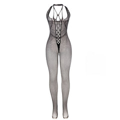 Descubre el máximo exponente de la belleza extrema con el bodystocking Sublime largo, diseñado en EE. UU. para mujeres que buscan sensualidad y sofisticación. Su tejido de rejilla negra ajustada y los tirantes cruzados en pecho y espalda crean un efecto visual impactante que realza cada curva con un aire moderno y atrevido.