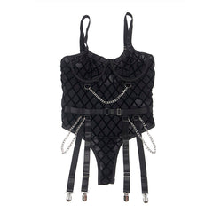 BODY CON CADENAS + LIGUEROS NEGRO L/XL.