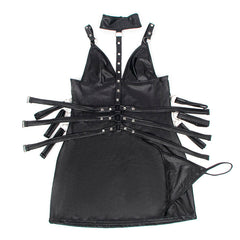 VESTIDO BONDAGE DE CUERO NEGRO S/M.
