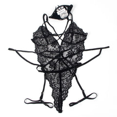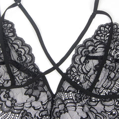La tela de encaje aporta un aire sofisticado y delicado, resaltando la sensualidad del conjunto. -